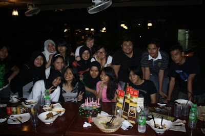 Then baru headed to Old Town... Dkt old town, they were there da... Ratna & the gang and anwar them... So, we, mirrah, tira, izza, me, anwar, amirul, syaza etc. dok luar... Order, makanan sendiri2 then makan... Borak2 lar mcm2... Then around 11pm++, Ratna and the gang, bawa cake to our place... Then sang the birthday song semua lar... Anyway, i hope they are happy... =))